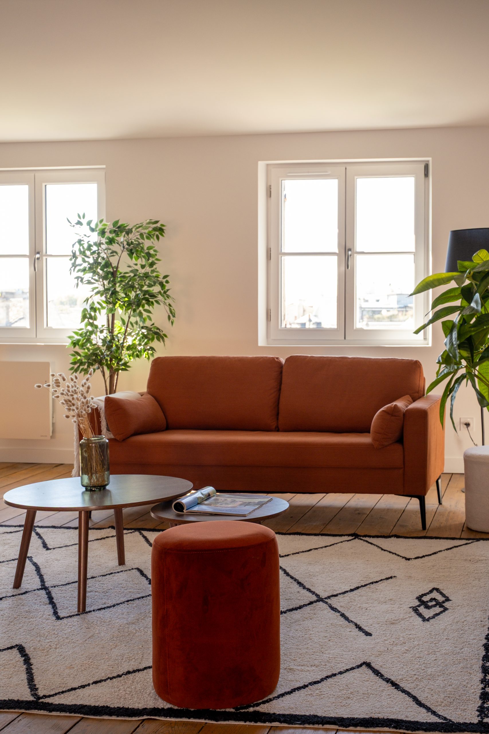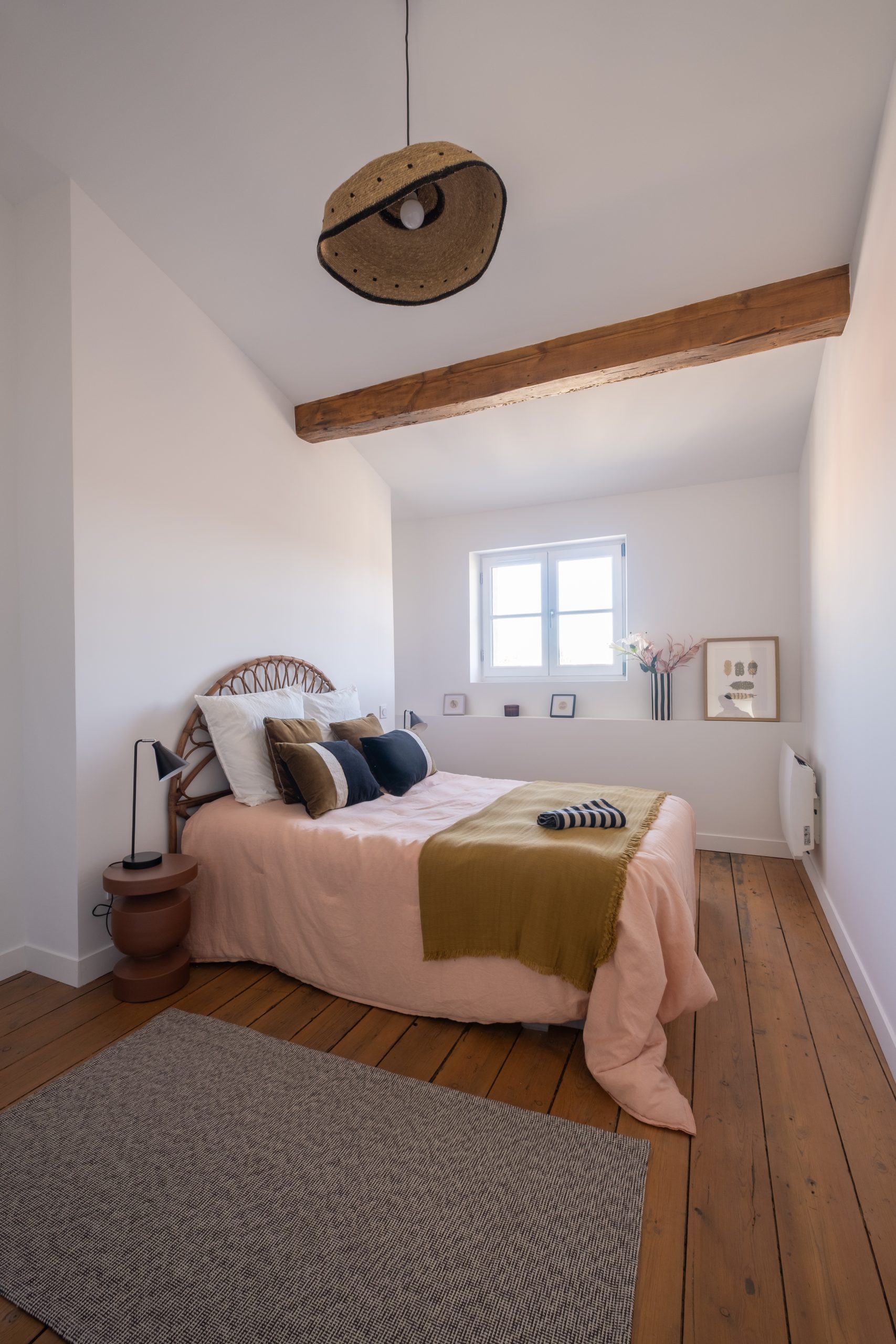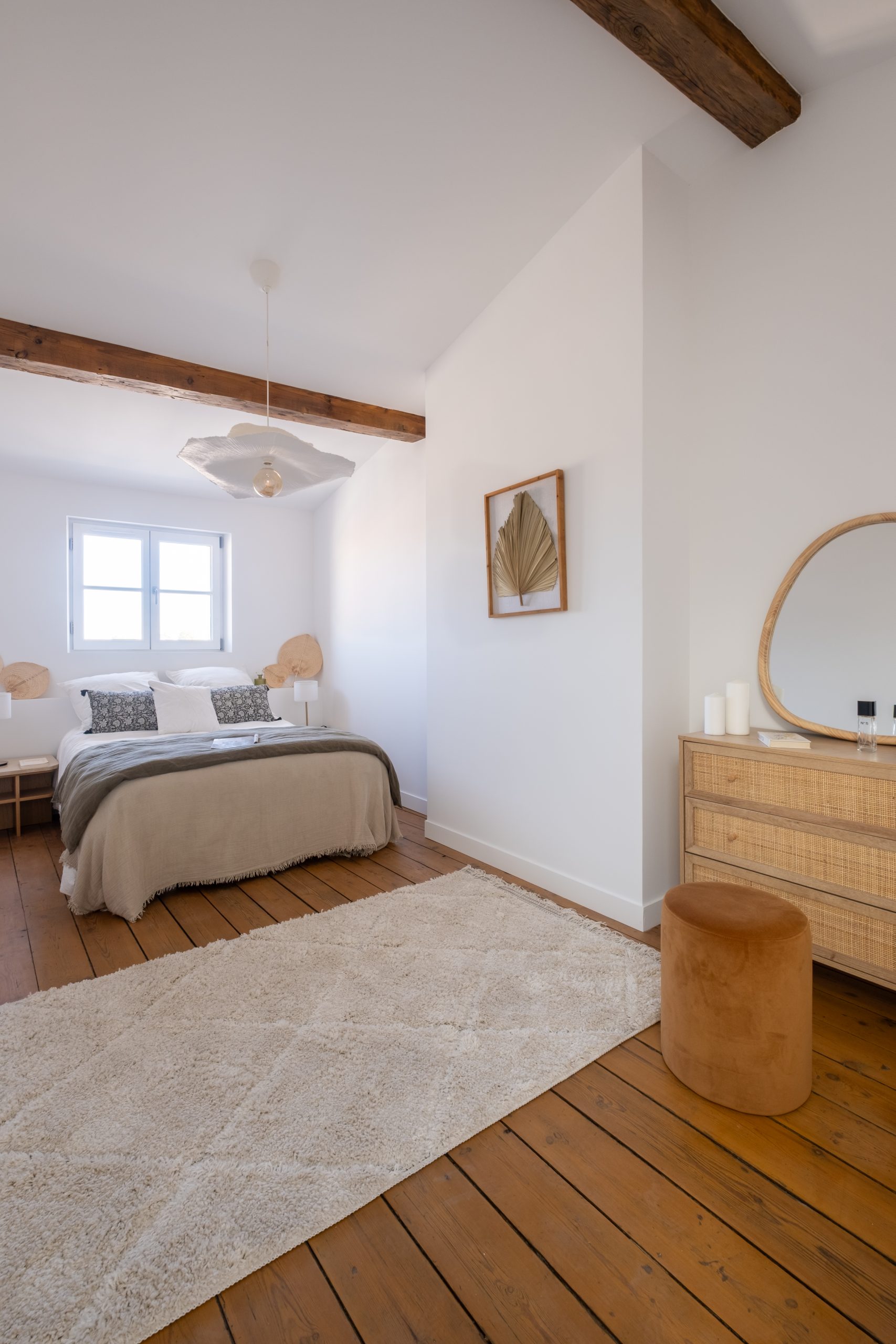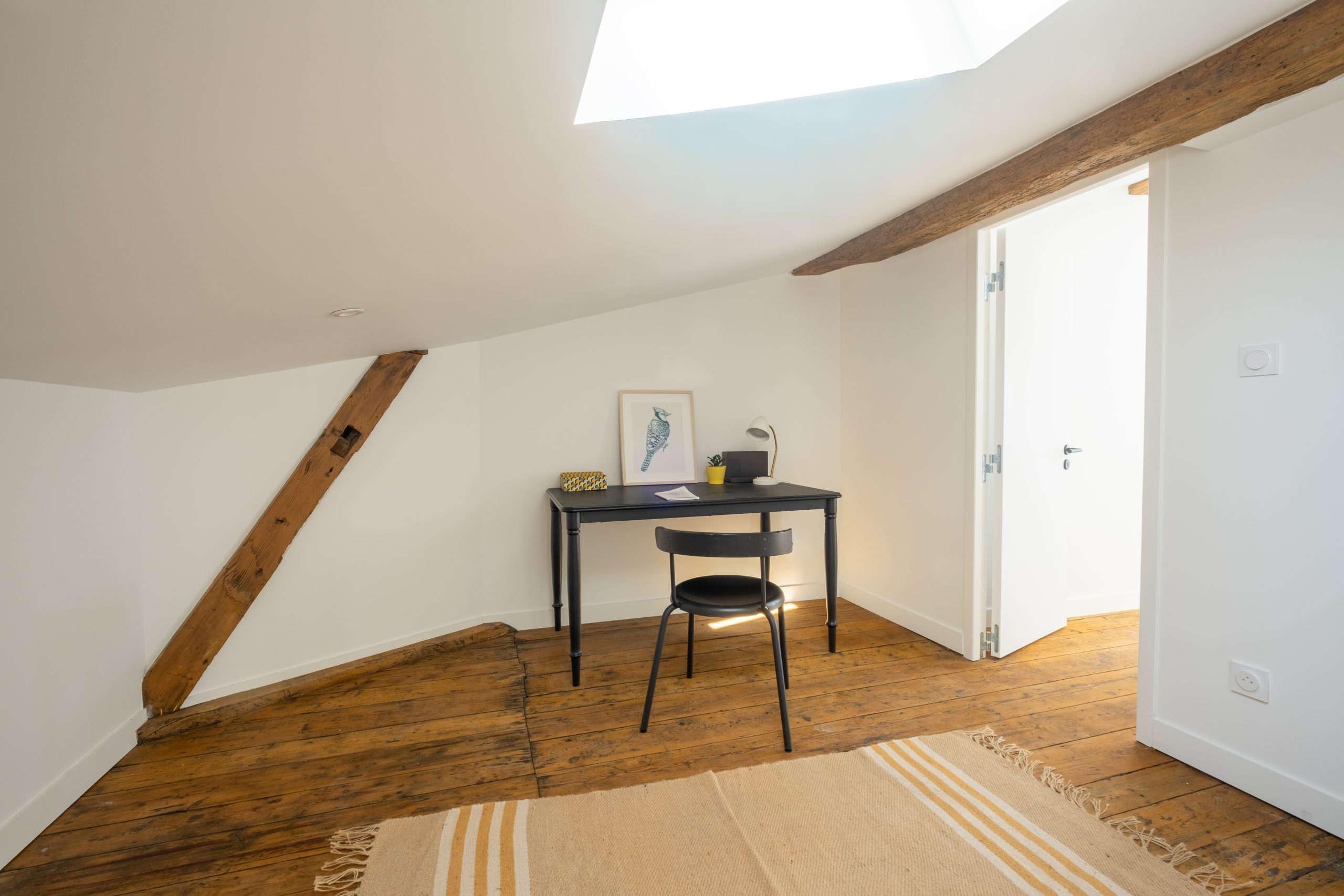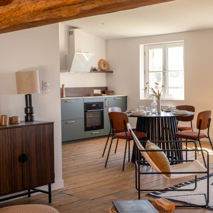 L’enjeu principal a été de tansformer sans dénaturer. Nous avons donc entrepris une rénovation complète : électricité, plomberie, peinture… Le parquet existant a été conservé, soigneusement poncé et vitrifié afin de préserver le charme de l’ancien.