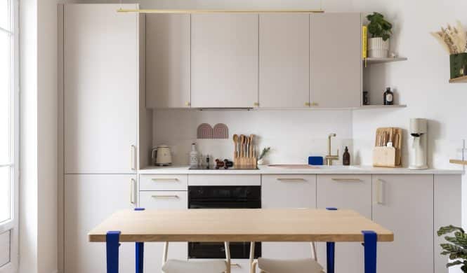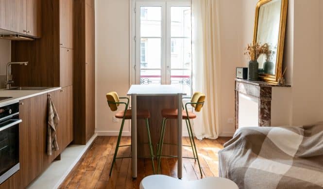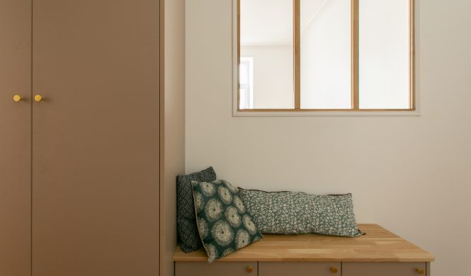 Un sublime appartement parisien que nous avons transformé ! Les moulures au plafond et le parquet d’origine apportent un charme fou à cet intérieur. Nous avons cassé les murs d’un ancien débarras pour le transformer en salle d’eau. Une cloison a été décalée pour accueillir la nouvelle cuisine et tous les murs on été repeints.