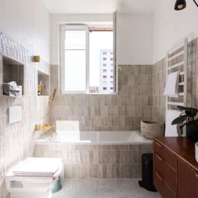 Envie d’inviter une ambiance marine à votre crédence de douche ou à l’ensemble de votre salle de bain, les zelliges blancs nacrés sauront convaincre. À associer avec une baignoire blanche, des meubles en bois brut et une touche de décoration marine (sans tomber dans l’excès), comme un beau coquillage pour rappeler le nacré de ces carreaux marocains. Voici des travaux appartement à la hauteur de vos envies !