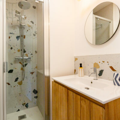 Dans la salle de bain, il s’invite également. Vous pourrez recouvrir toutes les parois de votre douche, ou le sol, ou les deux!
